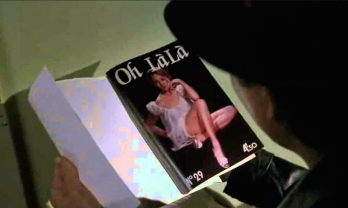 La secuencia en cuestión es aquella en la que Marty, el personaje de Michael J. Fox ojea lo que en principio cree que es el Almanaque con los resultados deportivos... pero en su interior se encuentra la revista para adultos Oh La La donde se encuentra con las imágenes de señoritas ligeras de ropa.