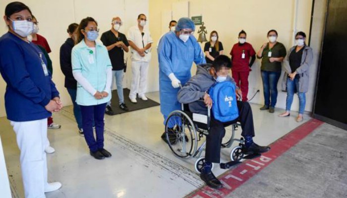 Los pacientes que egresan de la unidad médica tocan una campana para celebrar el fin de su tratamiento.