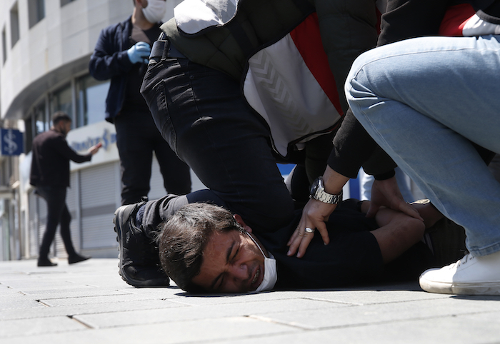 Finalmente, el tercer caso de abuso por parte de las autoridades es el de un video que circula en redes sociales, donde se observa cómo un sujeto es golpeado y sometido por dos policías municipales de San Luis de la Paz, Guanajuato, con el motivo de no portar cubrebocas.