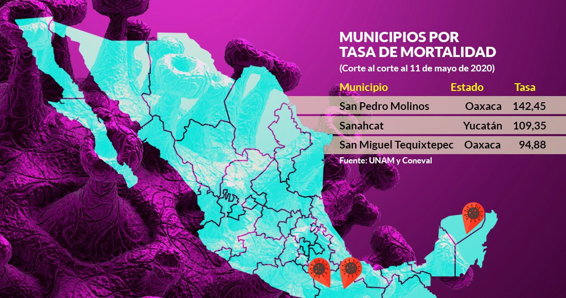 "La marginación territorial tuvo un papel importante. [...] Una localidad que no cuente con vías de comunicación óptima, claramente va a tener dificultad para traslados, comunicaciones hacia el exterior. De alguna manera esa marginación territorial, estrictamente en términos de infraestructura carretera, sí jugó como un escudo, un factor que protegió a esos municipios para que no tuvieran contagios estas semanas en las que las áreas urbanas, que dada la gran movilidad sí tuvieron de manera casi inmediata en los meses de febrero y marzo", agregó.