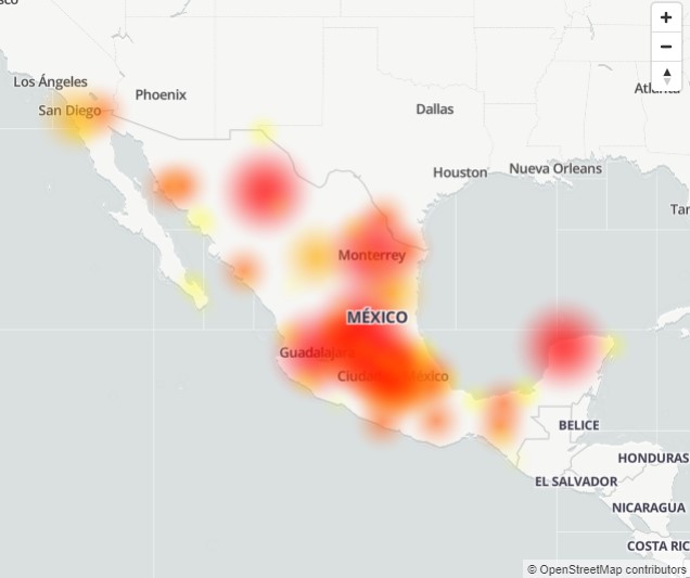 El portal Down Detector que aglomera fallas en servicios de telecomunicaciones e instituciones bancarias, detacó que la mayoría de los errores reportados se hicieron desde el centro del país, sin embargo, el fallo es generalizado en todo el país.