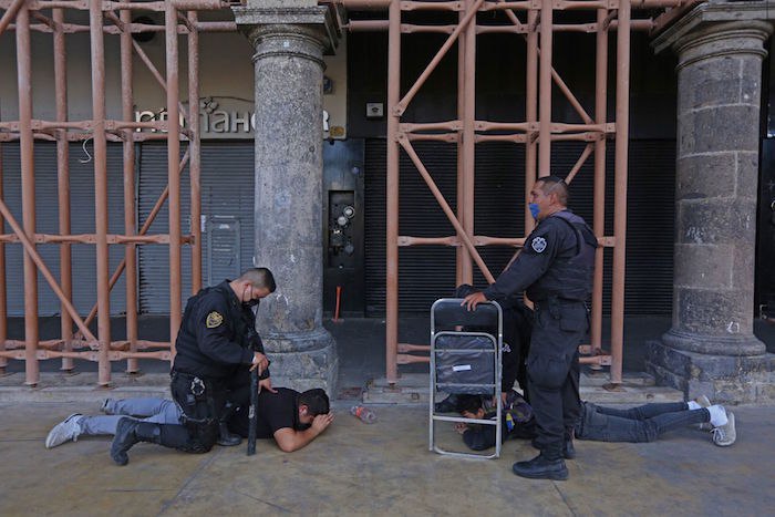 La Fiscalía de Jalisco detalló que la policía detuvo a seis menores, dos mujeres y 20 hombres originarios de otros estados y cuatro de ellos con antecedentes penales, por lesiones a al menos cinco policías y por daños causados al Palacio de Gobierno, al Palacio Municipal, al Consejo de la Judicatura, a dos patrullas y a cinco motocicletas.