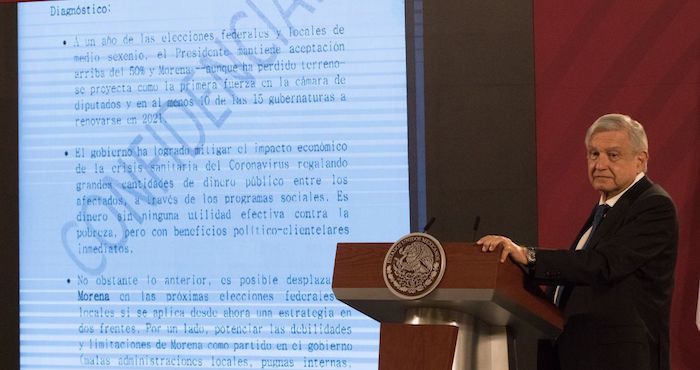 La dio a conocer a la opinión pública ni más ni menos, el Presidente de la República en la conferencia mañanera del martes pasado en un video en el que se expuso un resumen ejecutivo “confidencial” intitulado “La Recuperación de México”, suscrito por un denominado Bloque Opositor Amplio, presuntamente integrado por una legión de opositores a Morena, a AMLO y la 4T, en la que se menciona a los expresidentes panistas, gobernadores de varios estados, líderes de Cámaras empresariales, dirigentes de partidos políticos derrotados, directivos del Instituto Nacional Electoral (INE) y el Tribunal Electoral del Poder Judicial de la Federación (TEPJF), media docena de medios de comunicación, articulistas y columnistas e intelectuales “orgánicos”, con nombre y apellido.