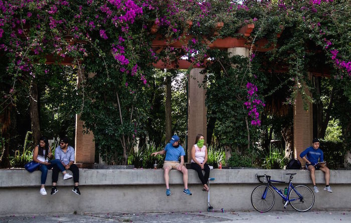 Vecinos de la Colonia Condesa salen con cubrebocas al Parque México como parte de la nueva normalidad en medio de la pandemia de COVID-19. Foto: Andrea Murcia, Cuartoscuro