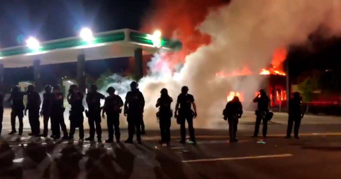 The Wendys where Atlanta Police shot and killed #RayshardBrooks has been lit on fire by protesters: pic.twitter.com/8i5uiAjPHp
