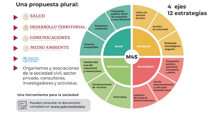 La Secretaría de Desarrollo Agrario Territorial y Urbano (Sedatu) presentó el martes el Plan de Movilidad Emergente para la Nueva Normalidad “Movilidad 4S para México: Saludable, Segura, Sustentable y Solidaria”, para reducir los contagios por la COVID-19 con traslados seguros y disminuir el uso de motocicletas y automóviles, principales fuentes de contaminación al aire que causan alrededor de 48 mil muertes prematuras cada año.