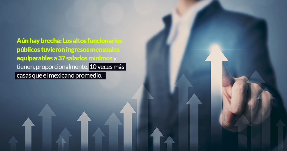 Lo anterior implica dos cosas: primero, que un funcionario público de alto nivel tiene ingresos hasta 7.4 veces mayores a los de un trabajador promedio en México; y segundo, que los funcionarios públicos de alto nivel tienen remuneraciones a las que sólo tiene acceso el tres por ciento de la fuerza laboral mexicana (más de 1.5 millones de personas) con ingresos de más de cinco salarios mínimos mensuales.
