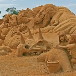 La arena se ha convertido en un material noble, disponible y maleable para los artistas plásticos, quienes trabajan y crean esculturales figuras inspiradas en la fantasía y la realidad.