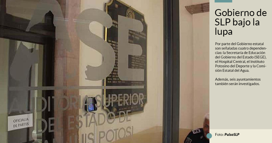 Finalmente, la Secretaría de Salud fue señalada por la Auditoría Superior de la Federación y por su similar estatal como la dependencia estatal potosina con mayor monto observado por presuntas anomalías en el ejercicio 2018.