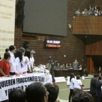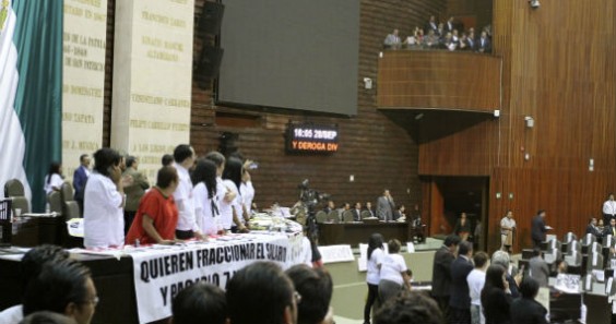 Ante la toma de la tribuna por parte de un centenar de legisladores de izquierda, la Presidencia de la Mesa Directiva, encabezada por Jesús Murillo Karam, dirigió la sesión desde un balcón y las posturas de las bancadas se fijaron desde las curules.