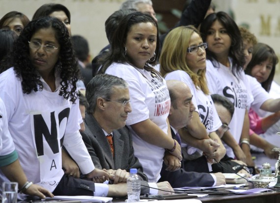 20928068. México, D.F.- La tribuna de la Cámara de Diputados fue tomada por legisladores inconformes, durante la discusión y análisis de la iniciativa de Reforma Laboral, enviada por el presidente Felipe Calderón. En la imagen los legisladores José González MorfÃn yJesús Murillo Karam.