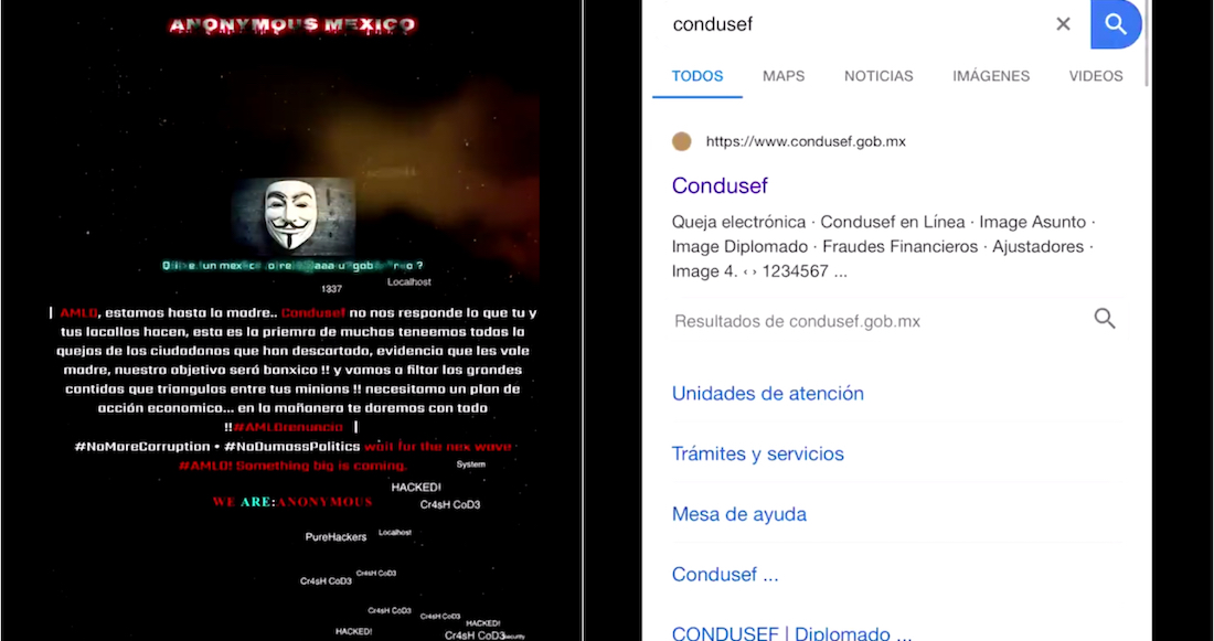 Apenas el 6 de julio La Comisión Nacional para la Protección y Defensa de los Usuarios de Servicios Financieros (Condusef) fue "hackeada" presuntamente por el grupo cibernético Anonymus lo que provocó la caída del sitio oficial.