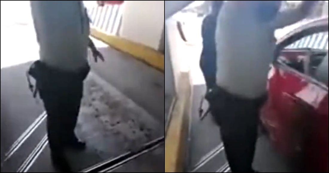 En el video, se aprecia que un vehículo pasa rozando al elemento de la Guardia Nacional; entonces el manifestante le dice: "mire, oficial, a lo que se está exponiendo".