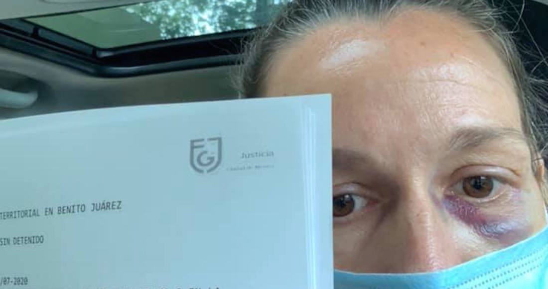 Claudia compartió una fotografía donde aparece con un moretón en el ojo y con la denuncia en las manos. Además, agradeció a las personas que la orientaron y la apoyaron cuando sufrió la agresión.