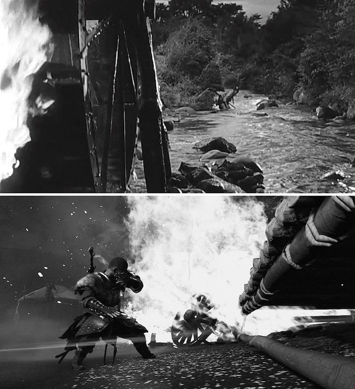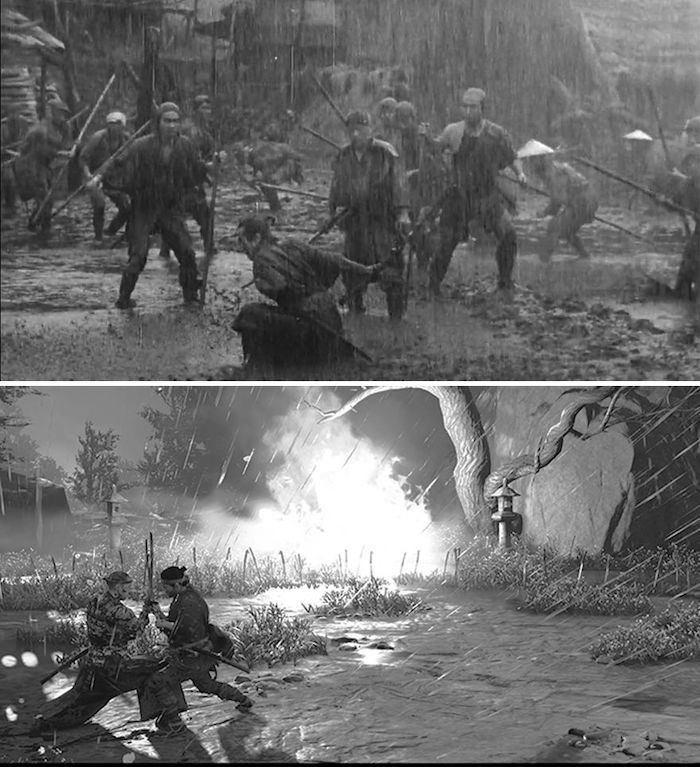 De hecho, existe un filtro llamado "modo Kurosawa" que modifica la imagen y el sonido del juego para asemejarlo al que tendría si fuera una película del realizador nipón. Jason Connell y Nate fox, directores del título, contaron en una entrevista con Entertainment Weekly que estudiaron aspectos de cintas clásicas como el contraste, el sonido, el granulado del celuloide y, lo más importante: tuvieron que pedir permiso a los herederos de Kurosawa para utilizar su nombre en el juego.
