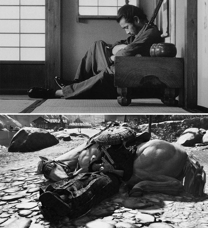 Sin embargo, el código de los guerreros no siempre era tan férreo. A veces la mejor opción era evitar el enfrentamiento cara a cara y escapar por la puerta trasera, justo lo que ocurre en Yojimbo cuando el protagonista es capturado y torturado por uno de los clanes de la aldea. El ronin se ve obligado a ocultarse bajo el suelo de las casas e incluso en un ataúd para escapar sin ser visto.