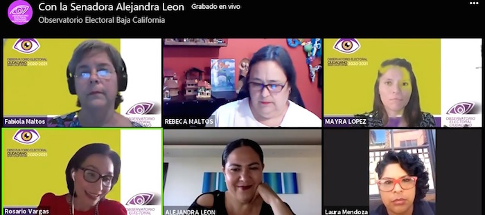 En un foro auspiciado por el Observatorio Electoral Ciudadano de Baja California, la legisladora federal refirió que desde que festejó su triunfo en las urnas como candidata a senadora en 2018. Foto: Captura de video