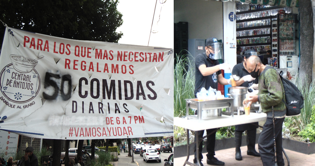 En la Ciudad de México hay personas a las que ni para un taco les alcanza. Por eso en la Central de Antojos, restaurante fundado en 2019, decidieron comenzar a ayudar durante la pandemia de COVID-19. Hoy lo que hacen cambia el semblante de los beneficiados. Un hombre, por ejemplo, toma su vaso con fideo y la sonrisa alcanza a notársele a pesar de que lleva puesto un cubrebocas. Es, probablemente, lo único que podrá llevarse al estómago durante esa jornada.