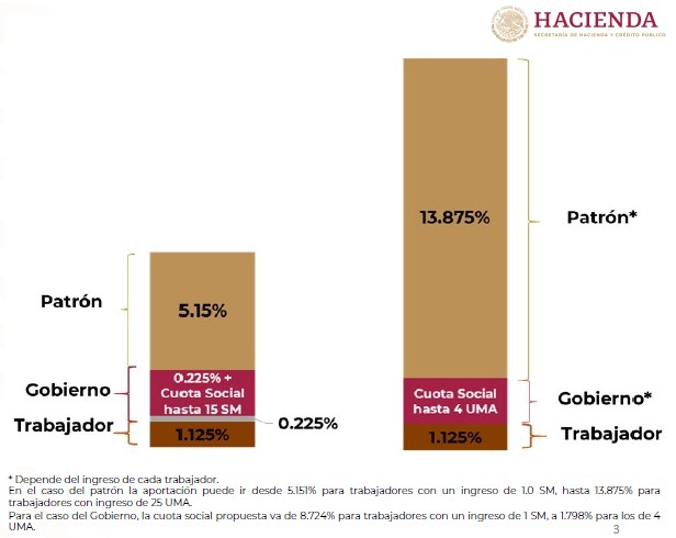 - Las aportaciones del Gobierno se quedan en el mismo monto, peor el esquema cambiará, para apoyar, principalmente, a quienes tienen menores ingresos, es decir, hasta cuatro salarios mínimos.