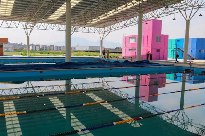 Basulto destacó, además de la construcción de las dos piscinas y la rehabilitación de la tercera, que había quedado afectada por el sismo de 2017, el hecho de que tanto el nuevo gimnasio como la pista de atletismo tengan medidas profesionales para "los deportistas de Iztapalapa".