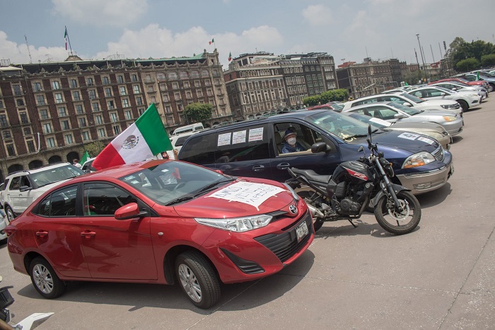 Unos a pie, y otros en sus vehículos se postraron a las afueras de Palacio Nacional ondeando las banderas nacionales y mostrando pancartas o lonas con leyendas como ""Fuera AMLO traidor a la patria", "El socialismo es la filosofía del fracaso, el credo de los ignorantes", "Por los jóvenes trabajo sí, limosnas no", "AMLO vete ya", y "Fuera AMLO, eres una vergüenza", entre otras.