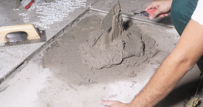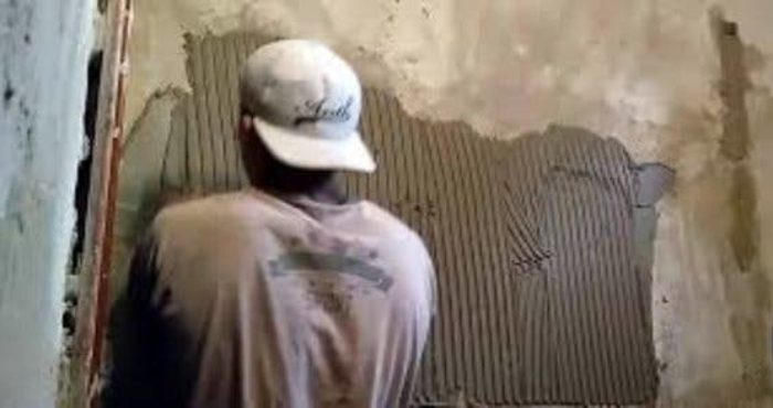 La Arlet carga blocks, bate la mezcla, carga botes con mezcla y pega con la mezcla los blocks.