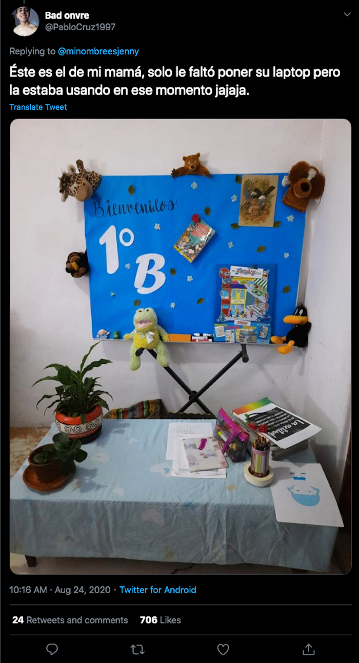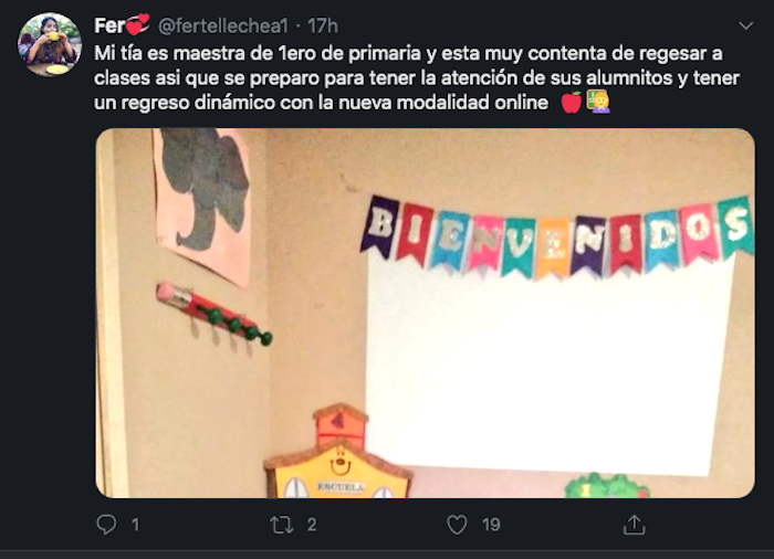 Hijos, esposos, familiares y hasta las mismas docentes subieron a redes sociales imágenes de los sets que prepararon para el regreso a clases, y así poder dar la bienvenida a los alumnos de educación básica como si estuvieran en el aula.