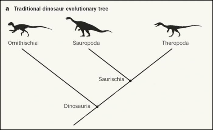 Sin embargo, en 2017, Norman y su equipo argumentó que estos grupos de familias de dinosaurios debían ser reorganizados, redefinidos y renombrados. En un estudio publicado en Nature, los investigadores sugirieron que los dinosaurios con cadera de pájaro y los dinosaurios con cadera de lagarto como el Tyrannosaurus evolucionaron a partir de un ancestro común, lo que podría anular más de un siglo de teoría sobre la historia evolutiva de los dinosaurios.