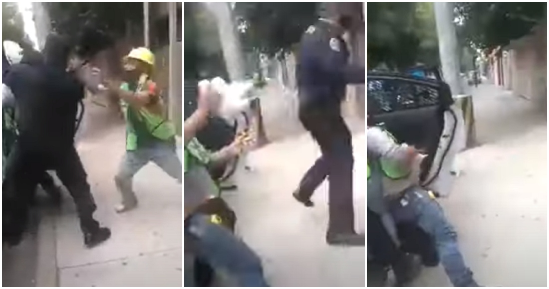 Las imágenes evidencian cómo un oficial espera a que saquen al detenido para empezar a golpearlo. "Tráiganlo, tráiganlo, dice".