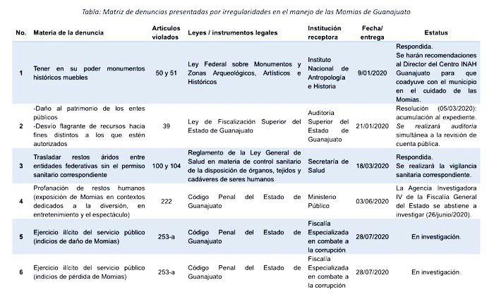 En total suman seis denuncias presentadas ante el INAH, la Auditoría Superior del estado, la Secretaría de Salud, el Ministerio Público y la Fiscalía Especializada en combate a la corrupción de Guanajuato.