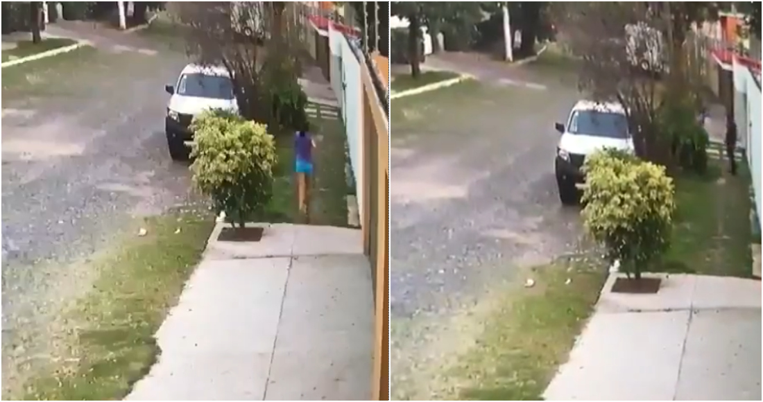 En la grabación difundida por TV Azteca se muestra como el hombre sale de la camioneta estacionada y finge tocar un timbre de un domicilio cercano mientras la mujer trota sobre la banqueta y se percata que el hombre le arroja semen mientras pasa.