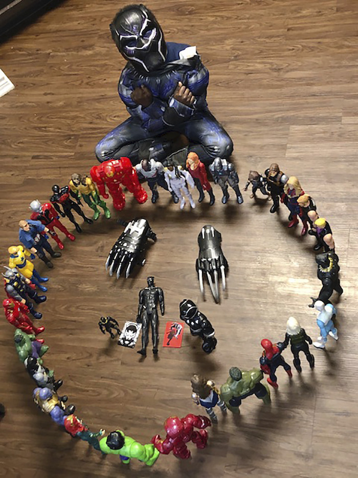 Gavyn Batiste, de 7 años, en Lafayette, Louisiana, ha visto “Black Panther” unas seis veces. Invitó a Capitán América, Thor y Hulk, entre otros Avengers, al funeral que realizó. También escribió una canción para T’Challa que dice: