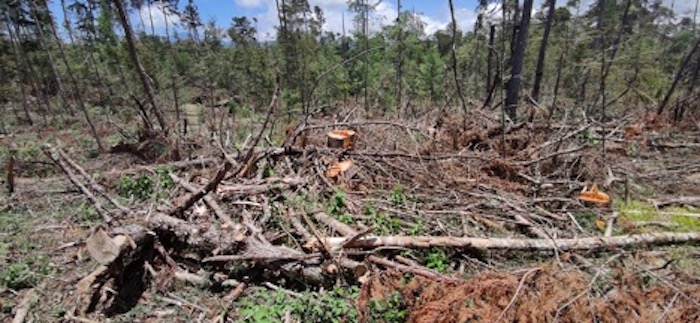 ––”Usa lo tirado, cuida lo parado”, era el lema que hace varias décadas seguía la gente del pueblo para el uso constante del bosque, traer leña, plantas medicinales y más cosas. Nadie ostentaba tirar un árbol para venderlo, solo los usaban para sus casas. Pero por ahí del 2003, gente de mala fé hicieron una falsa escritura y consiguieron el permiso de la Sagarpa para el “aprovechamiento forestal”. Ahí comenzó la tala clandestina de 55 hectáreas de bosque hasta la barbarie. Luego, en el 2004, fue asesinado el activista Samuel Cruz; después hubo una calma aparente, hasta el 2007, cuando le pegaron al bosque a matarras, cuando llegaron grupos más poderosos a talar el bosque, bandas organizadas con cincuenta hombres para cortar los árboles y subir madera, se llevaban de 30 a 40 árboles. Desde el 2014 al 2020 han habido puras camionetas detenidas pero sin ninguna persona responsable. Yo daba el aviso a la policía, les decía dónde estaban pero no pasaba nada. Una vez que las patrullas de la estatal pasaron por mi fuimos al lugar, había como 50 troncos talados, me puse a llorar.