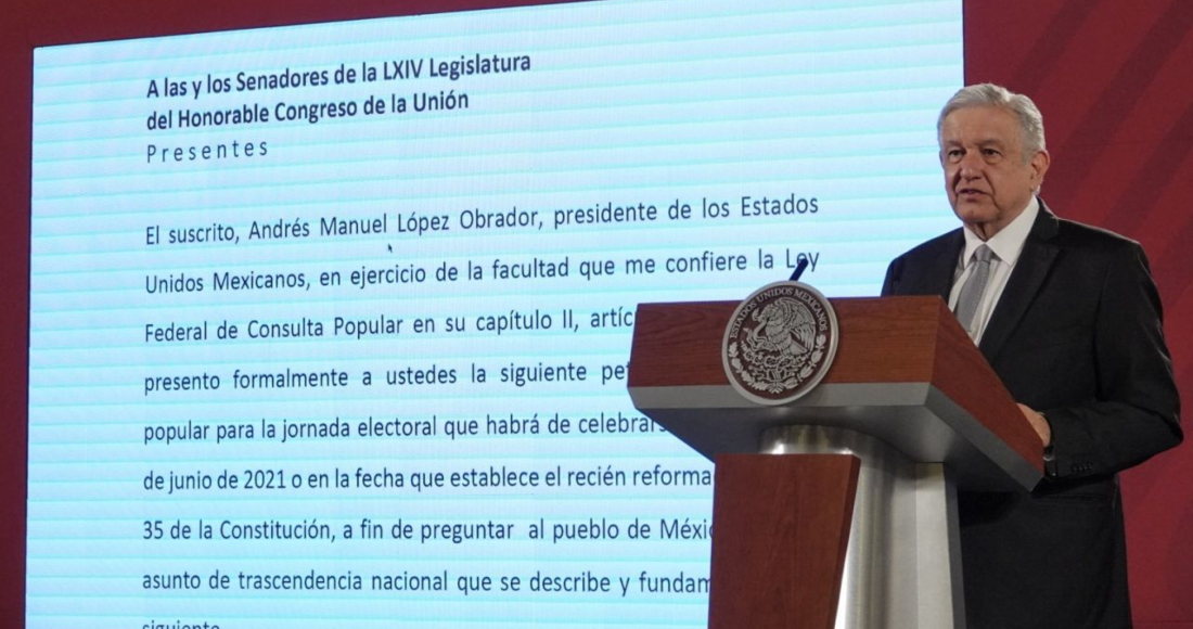 El Presidente Andrés Manuel López Obrador no esperó a que los ciudadanos presentaran sus 1.8 millones de firmas recolectadas y él mismo envió un documento que preparó junto con su Consejería Jurídica para solicitar la consulta popular a los expresidentes.