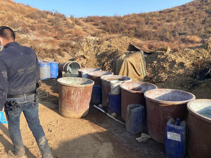 Al adentrase al lugar, con coordenadas 32.168607, -116.471377, elementos de la Guardia Estatal de Seguridad e Investigación (GESI) y Guardia Nacional se percataron de la existencia del laboratorio clandestino.