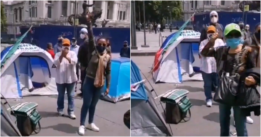 "Van a traer camiones de basura pa' recoger todo este pinche campamento, que está pura gente de los empresarios que no quieren pagar impuestos", reitera.