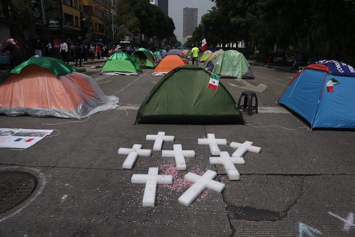 El plantón, organizado por la asociación civil derechista Frente Nacional Anti Andrés Manuel López Obrador (Frena), comprende toda la concurrida Avenida Juárez, desde el Palacio de Bellas Artes hasta el emblemático Paseo de la Reforma, con lo que dificulta notablemente el feroz tráfico del centro capitalino.