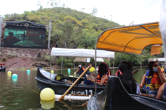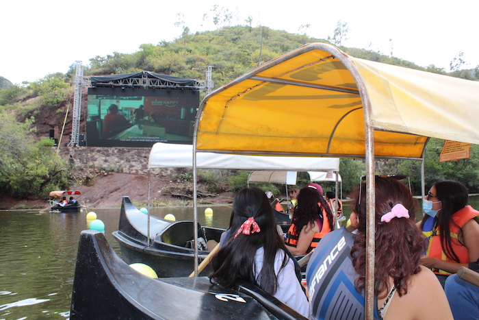 Bajo estrictos protocolos de salud como el poco aforo, uso de cubrebocas, gel antibacterial, arco de sanitización, señalamientos para mantener la sana distancia, entre otras protecciones en las lanchas, es así como se llevó a cabo el segundo día de este aquacinema ubicado en la Presa de la Olla, en la capital del estado.