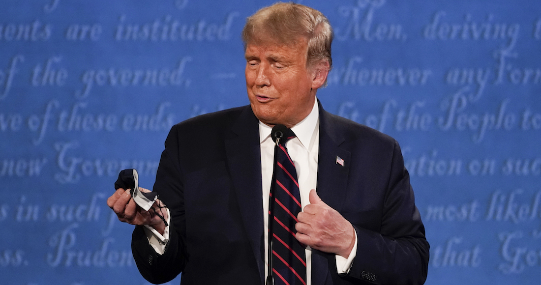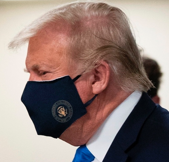 El mandatario usó mascarillas sólo esporádicamente y politizó su uso, diciendo que no las necesitaba porque le hacían pruebas y porque la mayoría de las personas que veía se mantenían a dos metros de distancia. Se burló del demócrata Joe Biden por cubrirse la cara constantemente y muchos de los partidarios del Presidente siguieron su ejemplo, evitándolas incluso en eventos concurridos.