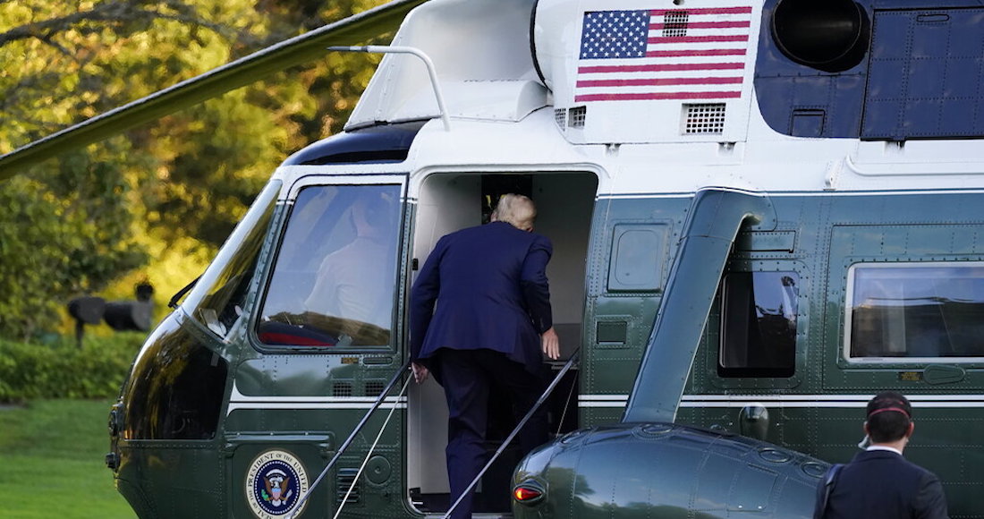 El helicóptero presidencial, el Marine One, transportó el viernes a Trump a un hospital militar, luego de despegar desde el mismo jardín de la Casa Blanca que menos de una semana antes fue el sitio donde nominó a la jueza Ammy Coney Barrett para el cargo de ministra de la Corte Suprema, mientras se enfocaba en las elecciones de noviembre.