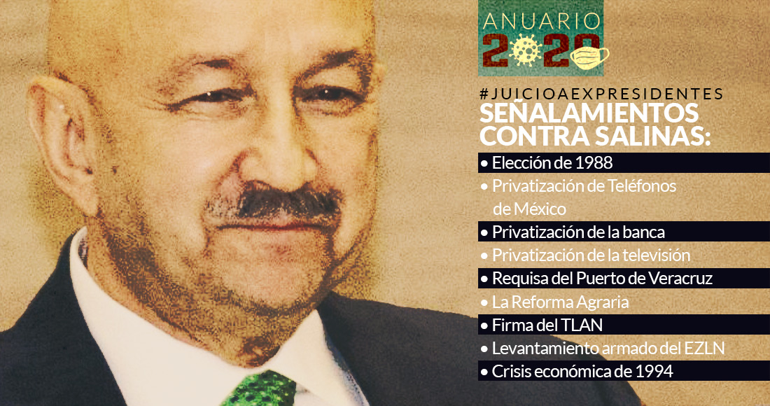 La lista de acusaciones contra el Presidente que gobernó México de 1988 a 1994 es larga, pero sobresalen las privatizaciones de Telmex, la banca y la televisión; una requisa en el Puerto de Veracruz; el otrora TLCAN; el levantamiento armado del EZLN y el asesinato de Luis Donaldo Colosio.