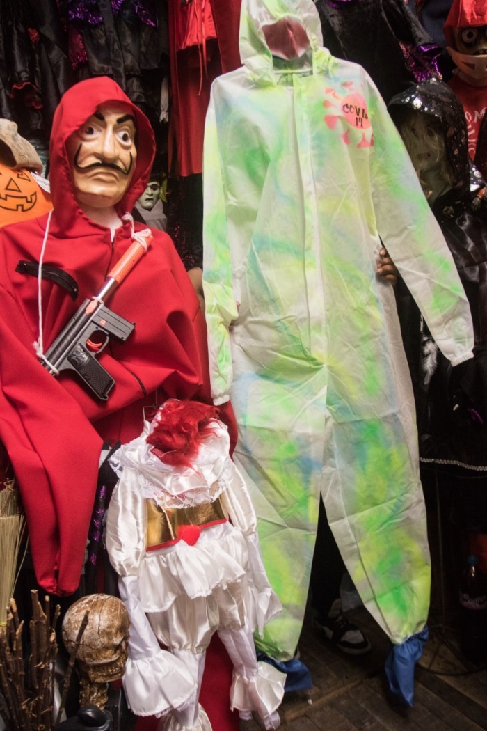 Los locatarios indican que hasta el momento la temática del nuevo coronavirus ha sido la más vendida, dejándo atrás los disfraces más típicos o de moda, como el disfraz de Jóker, de la película de Todd Phillips; de payasos demoniácos y de catrínes y catrinas.