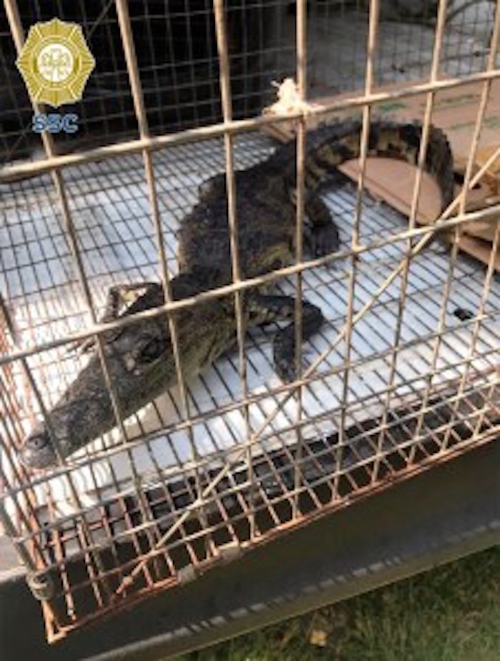 El hombre que encontró el cocodrilo dijo a las autoridades que al llegar a su domicilio observó una caja de cartón y pensó que era basura, al intentar tirarla se dio cuenta que era el ejemplar.