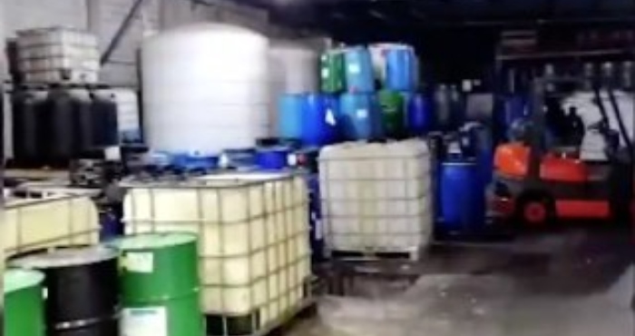 Detrás de la fachada se encontraba un almacén, con bidones apilados y tanques de mil litros (265 galones) que almacenaban precursores químicos, los cuales podían utilizarse para la elaboración de metanfetaminas y el opioide sintético fentanilo, según dijo Gallo.