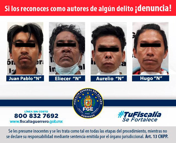 Chilpancingo, Guerrero, 26 de octubre (El Sur).- La Fiscalía General del Estado (FGE) de Guerrero informó que ayer un Juez vinculó a proceso cuatro hombres como probables responsables de feminicidio en agravio de la menor Ayelin Iczae de 13 años de edad, que fue desaparecida el jueves 15 y su cuerpo hallado en fragmentos el lunes 19 en Tixtla.