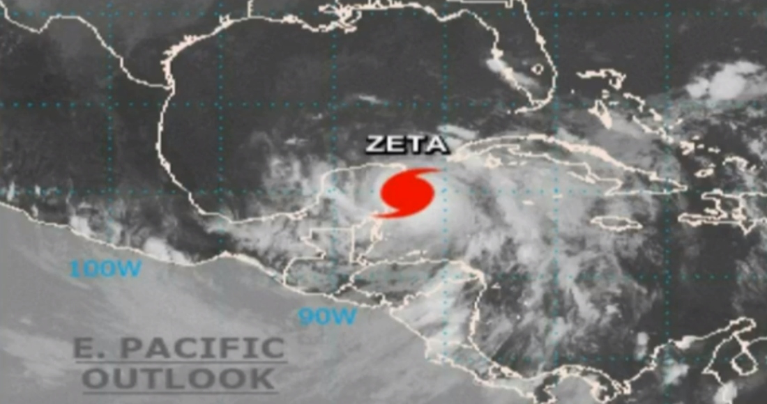 "Zeta" continúa en tierra y durante las siguientes horas mantendrá lluvias torrenciales en el norte de Quintana Roo y el oriente de Yucatán; intensas en Chiapas, muy fuertes en Campeche y fuertes en Tabasco.