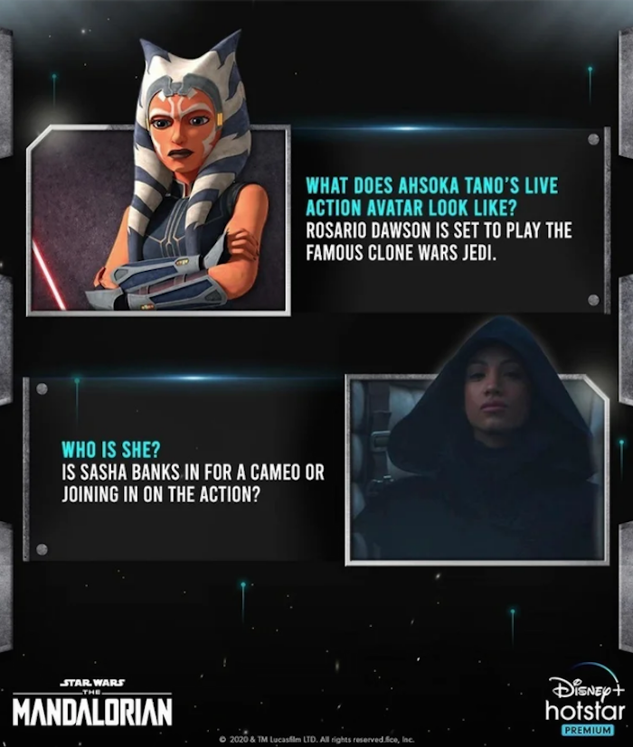 La cuenta de Instagram de Disney+ India colgó algunas curiosidades sobre la temporada 2. En un post ya eliminado, el perfil desveló que Dawson "está lista para interpretar a un famoso Jedi de La Guerra de los Clones". Junto a esta frase se puede ver una imagen de Ahsoka Tano.