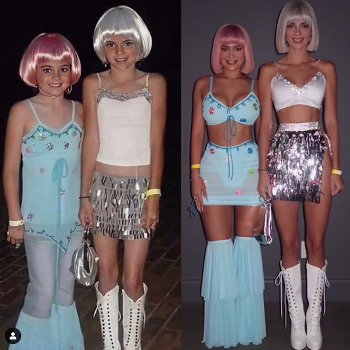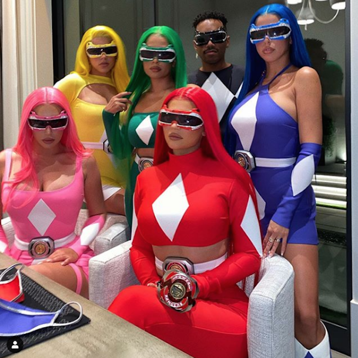 Las menores de las Kardashian, Kendall y Kylie recordaron su infancia recreando uno de los disfraces que usaron cuando eran niñas. Ambas lucen pelucas con atuendos brillosos como para ir a bailar música disco. Kylie Jenner y sus amigas aprovecharon la ocasión para disfrazarse de los Power Ranger, donde la pequeña Kardashian portó el traje rojo pero poniéndole el sensual toque que la caracteriza.