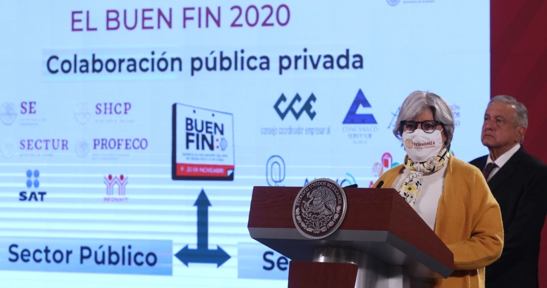 "En esta décima edición queremos enfatizar el cuidado de la salud. Muchos congresos, muchos seminarios, o se han pospuesto o se han ido completamente al ámbito virtual, al ámbito de la economía digital. Realmente la buena noticia aquí es que se va a celebrar el Buen Fin, pero que todos, sector público, sector privado y consumidores cuidaremos la salud. Esa es la novedad, una de las novedades de esta décima edición", dijo la funcionaria.