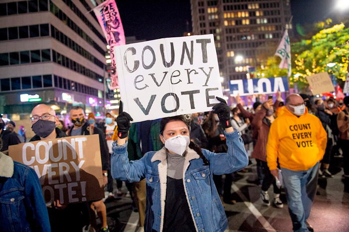 Entre tanto, desde la ciudad de Nueva York a Seattle, miles de manifestantes salieron a la calle para reclamar que se contaran todos los votos.